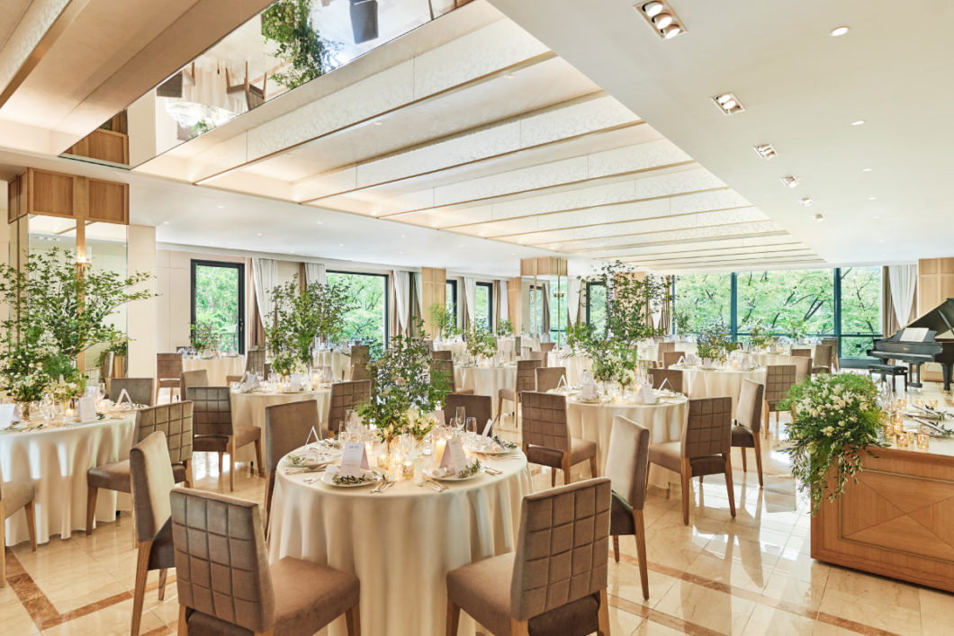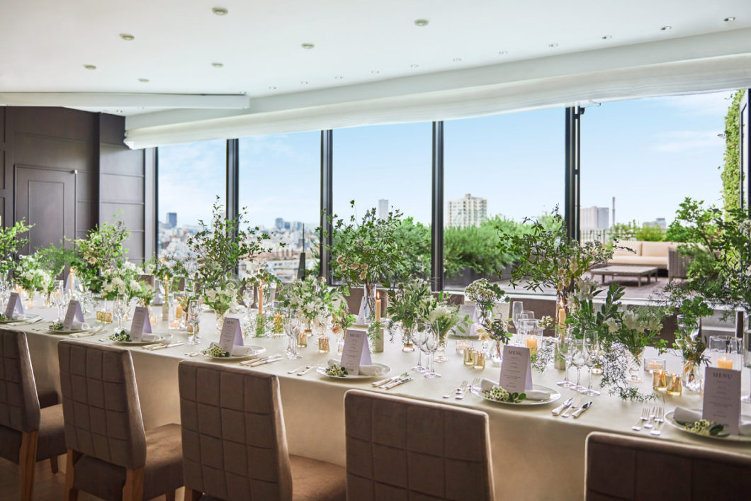こちらの会場は、白を基調とした部屋に、ナチュラルウッドの装飾により上質な雰囲気となっています。また、ビルの3階に位置しており、窓からは木々の青さを一面に感じることができます。