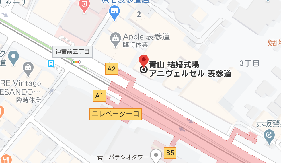 アニヴェルセル表参道は、表参道駅のA2出口を抜けて徒歩10秒の距離にあります。