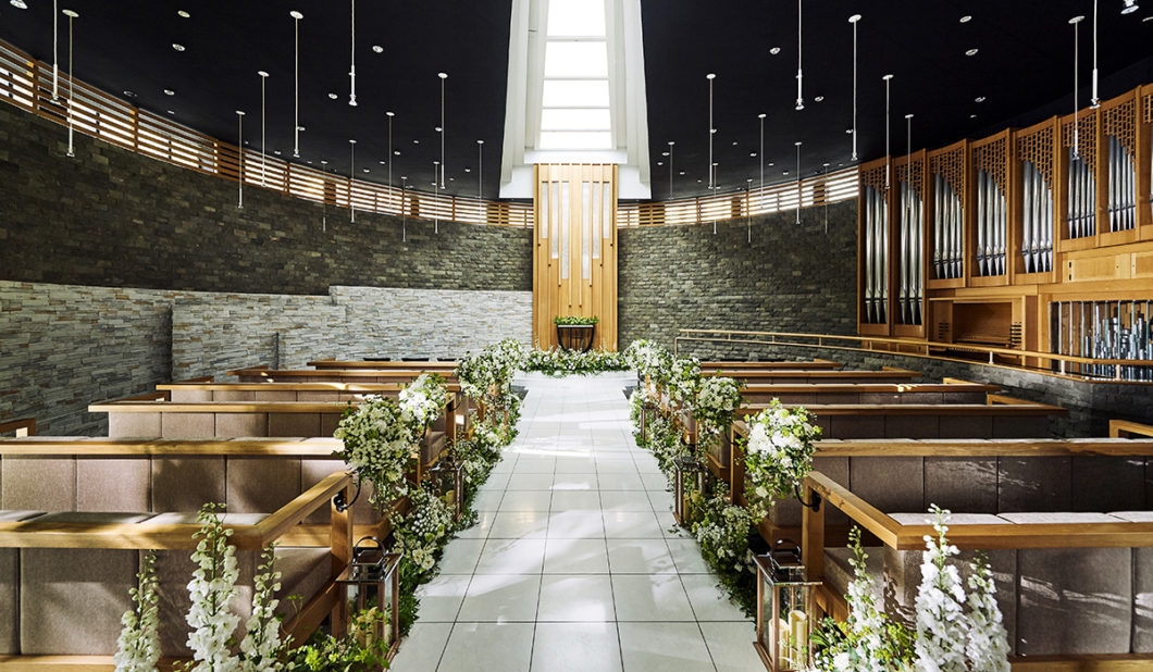 伝統とモダンが合わさったこちらは、新郎新婦お二人がより一層際立つ会場になっています。