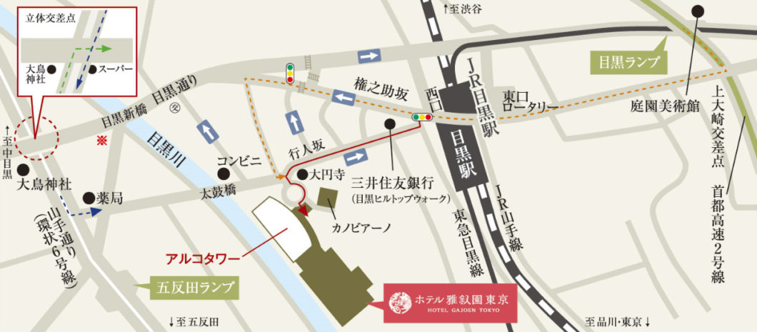 ホテル雅叙園東京は、目黒駅から徒歩5分というとても良い立地にあります。