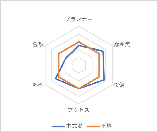 グラフは、紹介する全式場の平均が正六角形となるように計算し直しています。