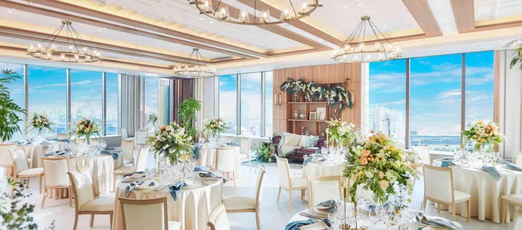 - 都会的なリゾート感:ビルの中にありながら、空を近くに感じる設計は「天空ウエディング」の名にふさわしい開放感です 。