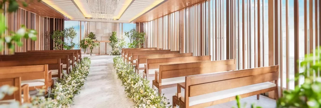 最上階に位置するチャペルは、一歩足を踏み入れた瞬間に別世界のような開放感に包まれます 。